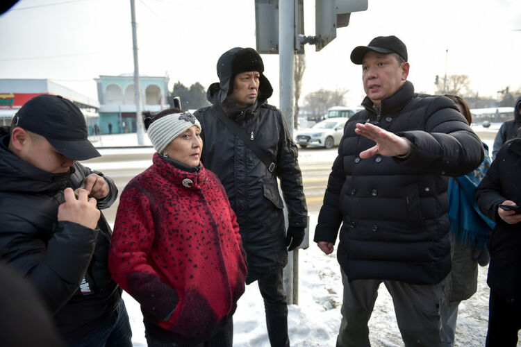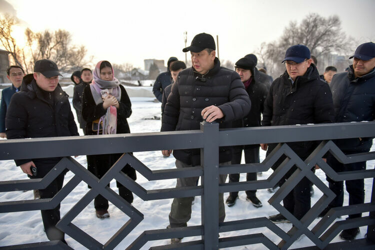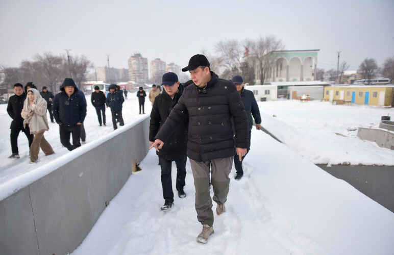Bishkek Mayor Aibek Dzhunushaliev held an on-site meeting and inspected the work on key infrastructure projects in the capital. During the visit, the mayor visited Zhibek Zholu Avenue, where a bridge is being built across Alamedin River. The press service of the City Hall reported.