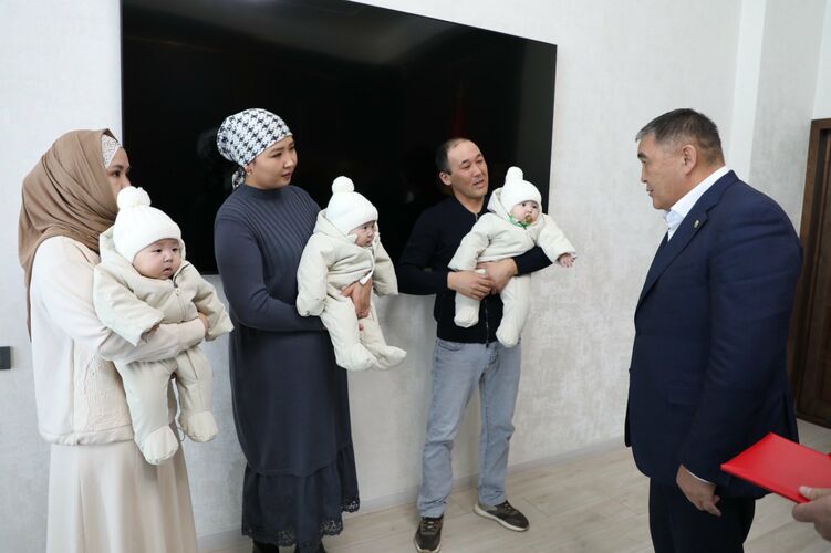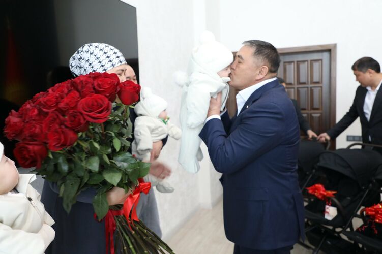 Considering the birth of three children at once and the need to support the country’s demographic situation, Kamchybek Tashiev presented the family with the keys to a two-room apartment in the central part of the capital.