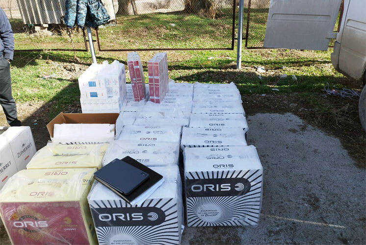 An inspection revealed that the minibus was carrying 21,900 packs of ORIS and ZUMERRET cigarettes without excise stamps.