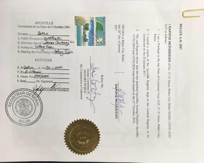 As for the apostilles of the documents, which were a part of the scandal around Belize, the received documents prove only that the apostilles with these numbers have been actually issued on October 21, 2016. But there is no information on the content of the documents certified by the apostilles.