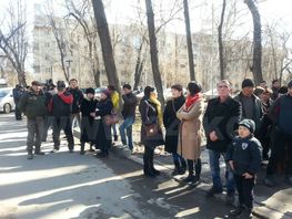 The member of Ata Meken parliamentary faction was summoned to GKNB in connection with a criminal case initiated against him. About 30 people gathered on Erkindik Boulevard.According to the civil activist Adil Turdukulov, who organized the rally, the protestors also speak in defense of nine prisoners charged with attempt to overthrow the government.