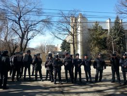 Rally in support of MP Almambet Shykmamatov is held in front of the State Committee for National Security (GKNB) building in Bishkek.