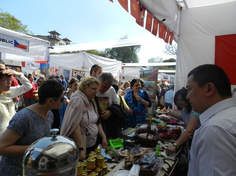 Pavilion of the Embassy aroused great interest among the visitors. They got tourist brochures about Kyrgyzstan.