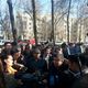 People again gather near GKNB building in Bishkek. Entrances to the department are blocked, police is on robust security regime. There are about 100 people now.