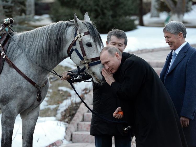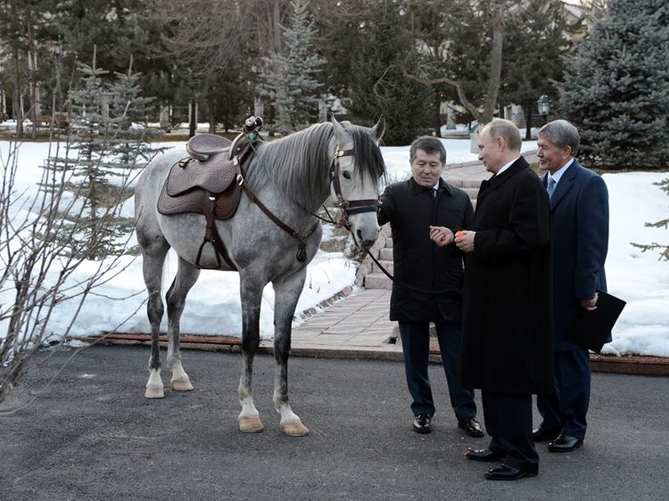According to the press service of the Kyrgyz President, Vladimir Putin received Arabian horse as a gift.