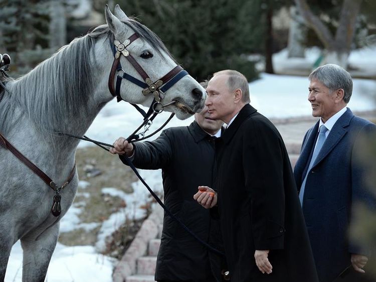 Almazbek Atambayev presents Vladimir Putin Arabian horse