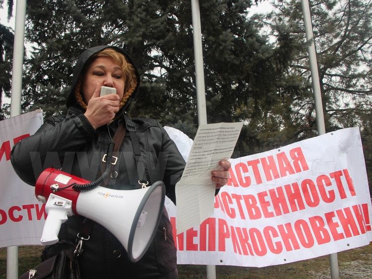 According to participant of the peaceful protest Gulmira Ibraimova, «the bill is raider one». «Its essence lies in the fact that the law allows to withdraw real property of any citizen of Kyrgyzstan and to do this under the pretext of public needs. We had planned to gather a lot of people at the peaceful rally, but mass protests over the arrest of MP Tekebayev started in Bishkek. In order to avoid provocations, we decided to do it in a small amount," she said.
