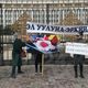 There are only seven people now: the family of Japarov, his wife and the wives of the arrested relatives of the former deputy. They hold the posters «Freedom to the son of the people," «Japarov’s life in danger," «Freedom for illegally detained children.»