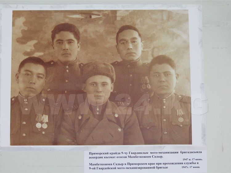 The exhibition presents photographs of veterans of the Great Patriotic War Makai Usupov, Musakozho Bektashov, Sadyr Mambetkozoev and others, articles from newspapers of different years, documents.