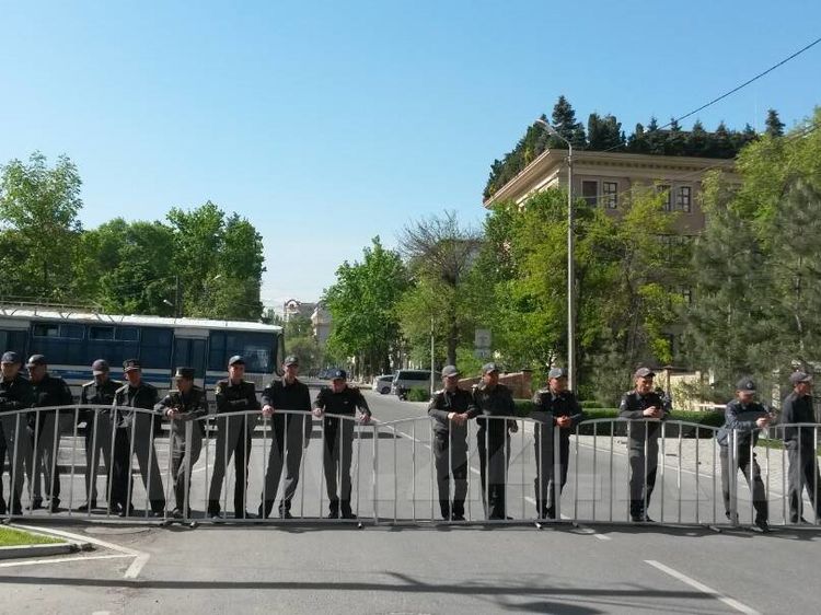 The organizers have installed a loudspeaker from which the recording of Omurbek Tekebaev’s speech at one of the parliament sessions and the song of Ata Meken sound.