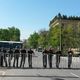 Police officers control order at the scene.