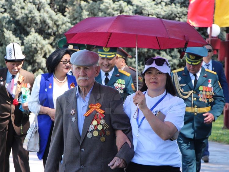 «We bow our heads before the immortal memory of those who died on the battlefields, those who gave their lives for our sake, for the sake of a peaceful sky for all of humanity," President Almazbek Atambayev said in his speech on the occasion of the national holiday.