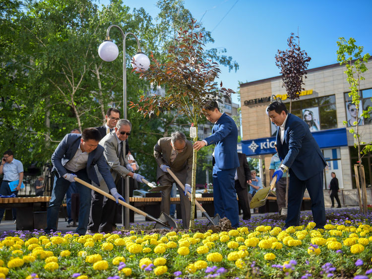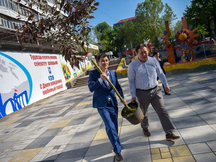 Sakura planting ceremony in honor of the 25th anniversary of the establishment of diplomatic relations between Kyrgyzstan and Japan took place in Skazka (Fairy Tale) park at the intersection of Abdrakhmanov and Toktogul Streets. Press service of the Bishkek Mayor’s Office reported.