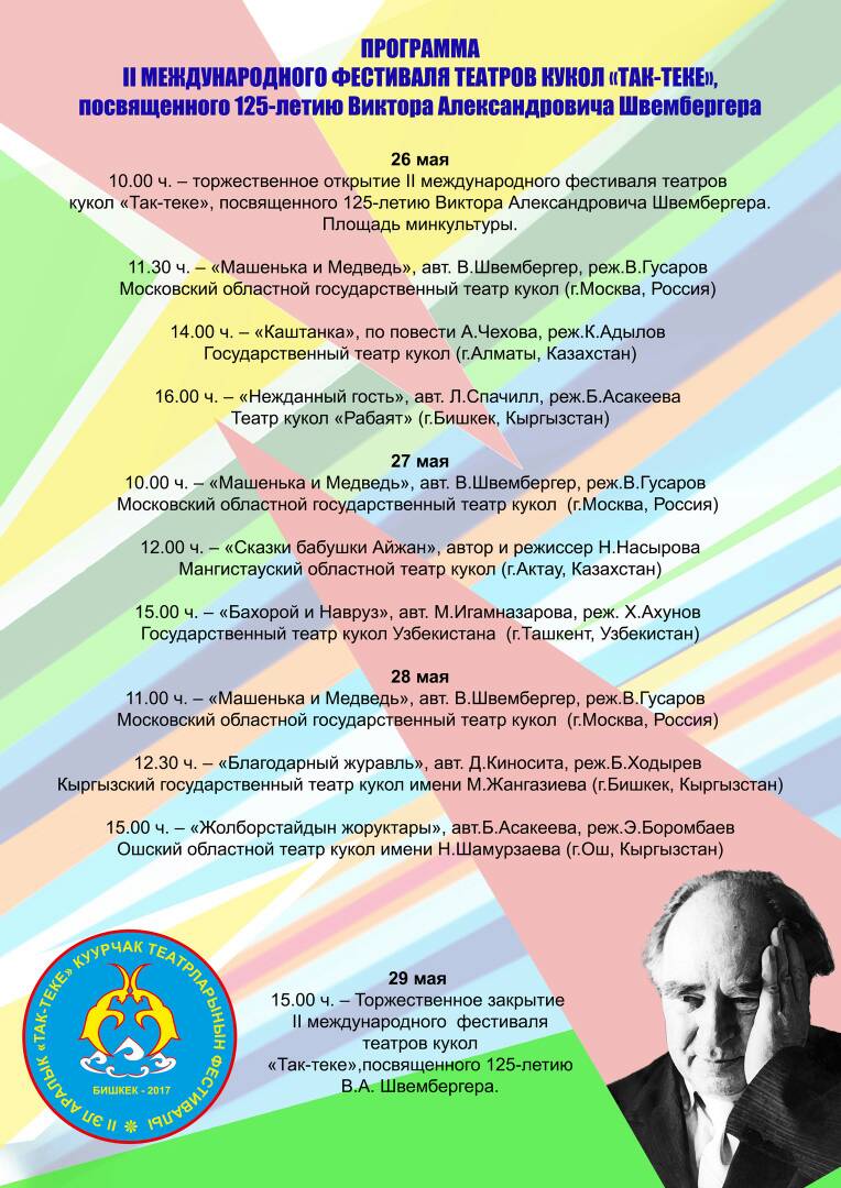 The 2nd International Festival of Puppet Theaters Tak-Teke was opened in Bishkek. The State Puppet Theater named after M. Zhangaziyev informed.