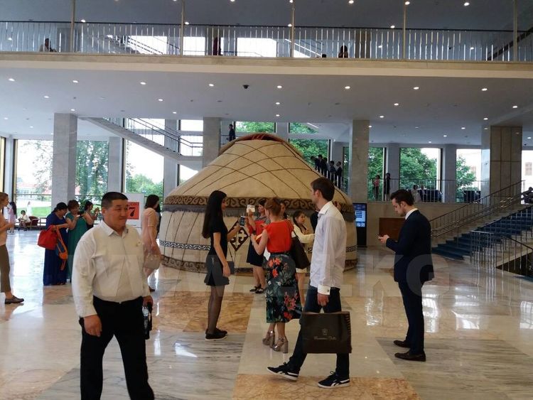 The square at the entrance to the Kremlin Palace is crowded even before the beginning of the event. There are many representatives of the Kyrgyz diaspora. The event became for them another good opportunity to meet with old friends and acquaintances.