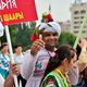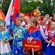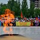 Delegates in national costumes gathered at the central square and with flags and billboards marched to Victory Square and laid flowers to the Eternal Flame.