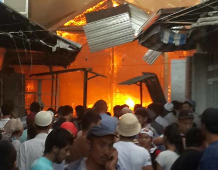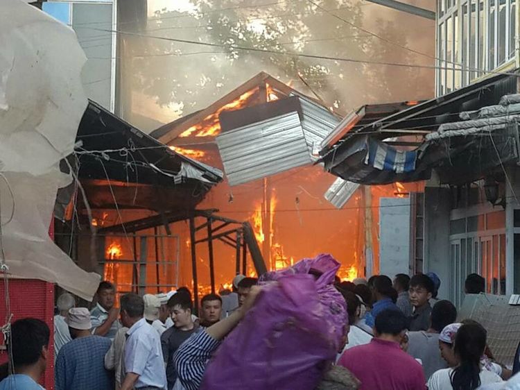 The central market of Uzgen town, Osh region, is in fire. Press service of the Ministry of Emergency Situations Reported.