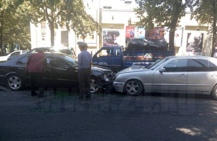 Two cars collided at the intersection of Chui Avenue and Erkindik Boulevard (near Ala-Too cinema) in Bishkek. Readers informed 24-kg.com news agency.