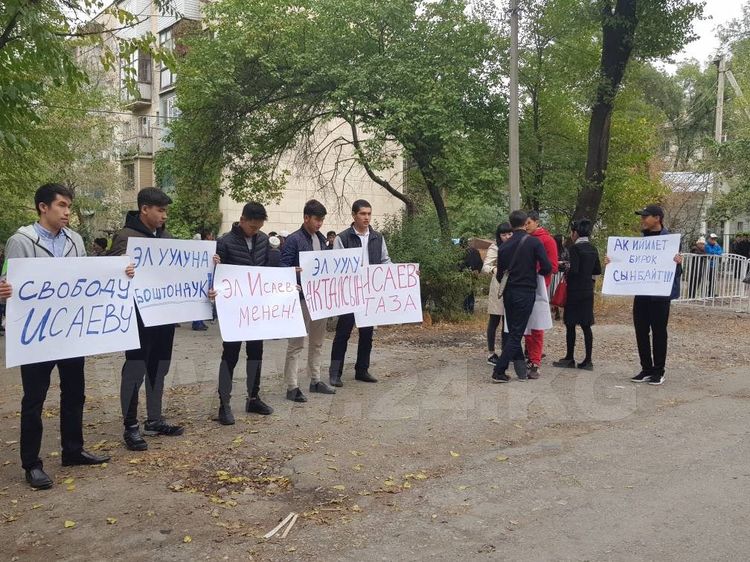 About a hundred supporters of the deputy of Parliament Kanatbek Isaev gathered near the building of Pervomaisky District Court in Bishkek. Measure of restriction will be selected for him in the near future.