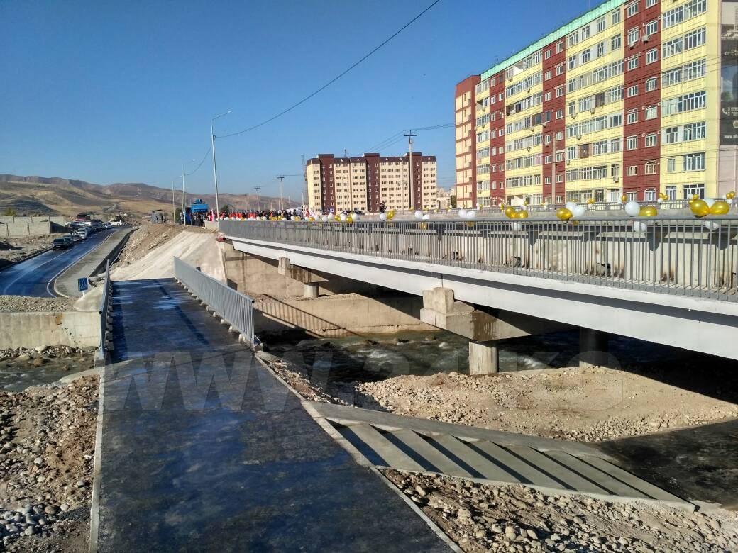 Today, a bridge across Alamedin River was officially commissioned in Bishkek near the 12th microdistrict. The mayor of the capital, Albek Ibraimov, who took part in the opening ceremony, reported that the length of the bridge is 54 meters, width — almost 15 meters.