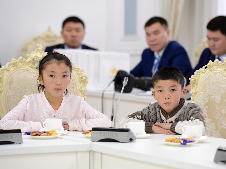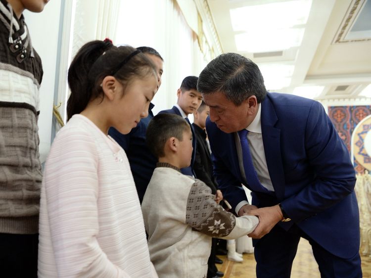 The President of Kyrgyzstan Sooronbai Jeenbekov met with children who lost their relatives and parents as a result of the crash of Boeing 747 cargo plane in Dacha SU on January 16, 2017. The Information Policy Department of the Presidential Administration reported.