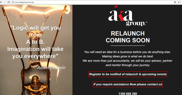 The attempt to look at the official website of AKA Group failed. Its main page says that «relaunch coming soon.»