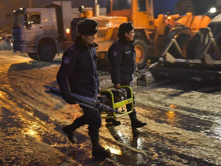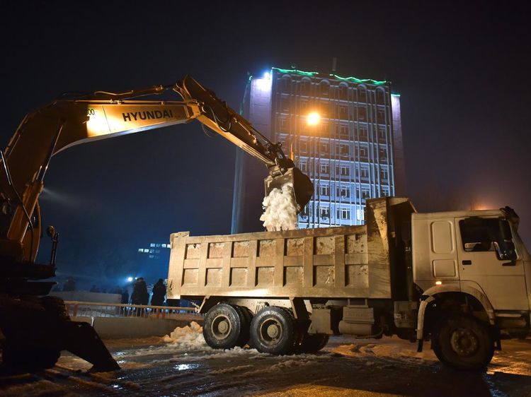 Employees of the municipal enterprise Bishkekzelenkhoz together with the Ministry of Emergency Situations clear the riverbed of Ala-Archa river on Ryskulov Street of ice and snow jams. Bishkek City Administration reported.
