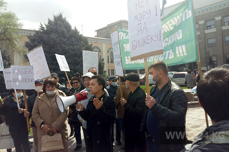 Residents of Bishkek, who gathered for the flash mob «We are suffocating» in front of the building of the Bishkek City Administration, demand resignation of the mayor Albek Ibraimov. They accuse the authorities of corruption.