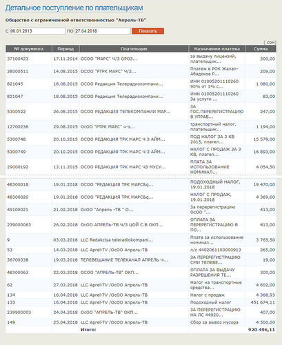 The TV channel has paid 920,400 soms in taxes since 2014, Open Budget portal says.