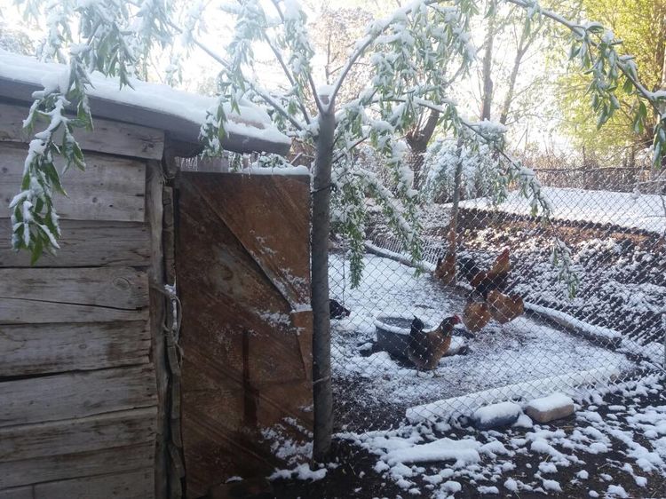 Snow fell in Ak-Suu district of Issyk-Kul region at night. Reader sent to 24-kg.com news agency photos from Sovietskoye village.