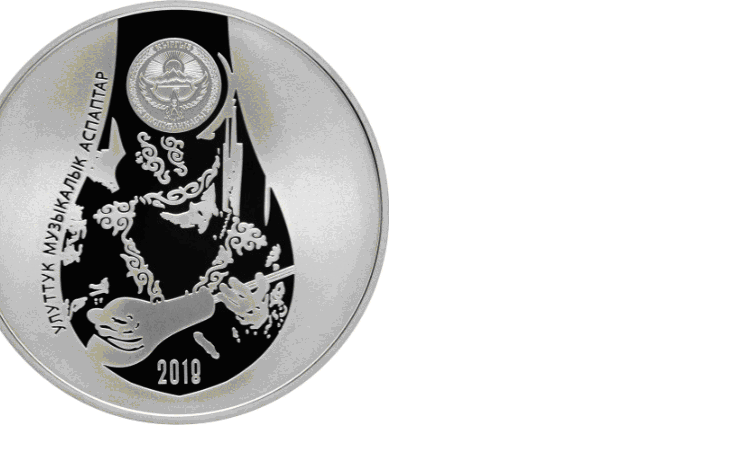 The coin «Komuz» was issued to promote the spiritual and cultural values of the Kyrgyz people.