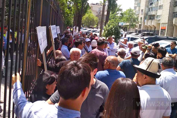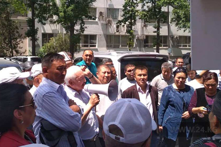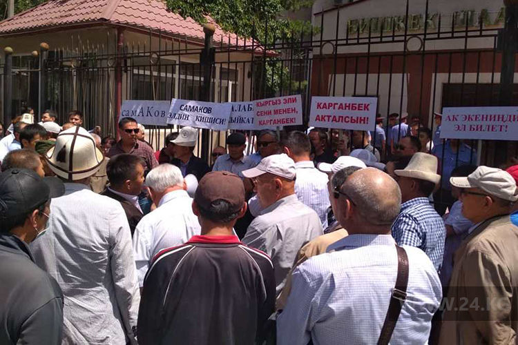 The supporters of the former parliament deputy, Karganbek Samakov, hold rally at the Bishkek City Court. The judges, chaired by Zhanyl Mambetaly, upheld the verdict of the first instance court today.