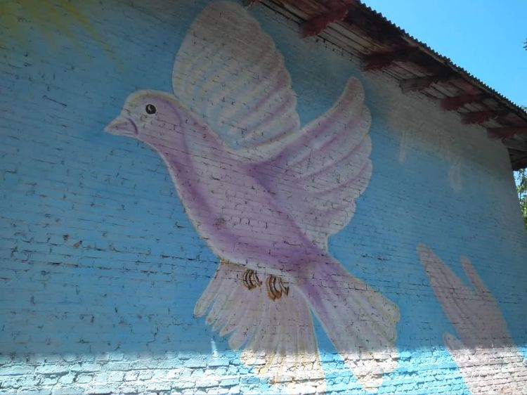 One graffiti is located in Cheryomushki micro district on Rustaveli Street, the second one is on Dadabay-Ata Street, near the main building of the Osh State University. The third one will appear on Masaliyev Street. All the graffiti symbolize freedom from slavery.