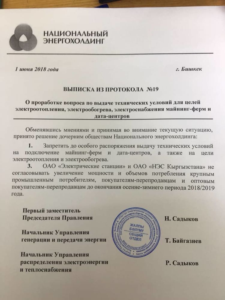 The National Energy Holding has banned the issue of technical specifications for the connection of mining farms, data centers and electric heating. The document was published on Facebook.