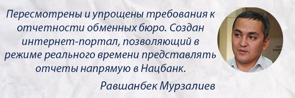 Нельзя сказать, что Национальный банк контролирует рынок только карательными методами. Отнюдь. Чтобы вывести обменные бюро из тени, наоборот, ослабляются правила работы.