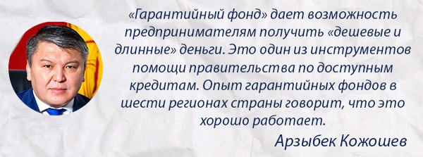 На сегодня капитал ОАО составляет 72 миллиона сомов. Еще $3 миллиона выделит Азиатский банк развития. В результате капитал «Гарантийного фонда» составит около 280 миллионов сомов.
