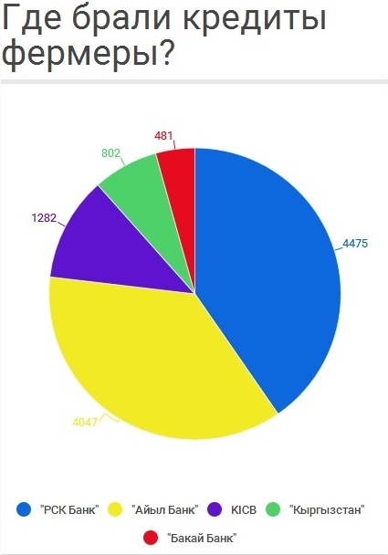 По его данным, больше всего займов выдали государственные «Айыл Банк» и «РСК Банк». С залогом - на 3 миллиарда 969,6 миллиона сомов, без залога – 26,9 миллиона сомов.