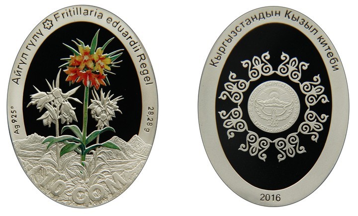 Коллекционная монета «Рябчик Эдуарда (цветок айгуль)» выпущена для популяризации и сохранения редких видов флоры, занесенных в Красную книгу Кыргызстана. Ее особенность – овальная форма.