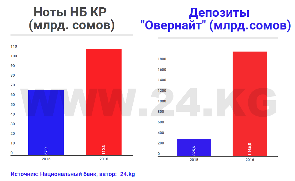 Отмечено, что денежная база страны за минувший год выросла на 27,6 процента, составив на конец года 85,6 миллиарда сомов. В 2015-м она увеличилась лишь на 4 процента.