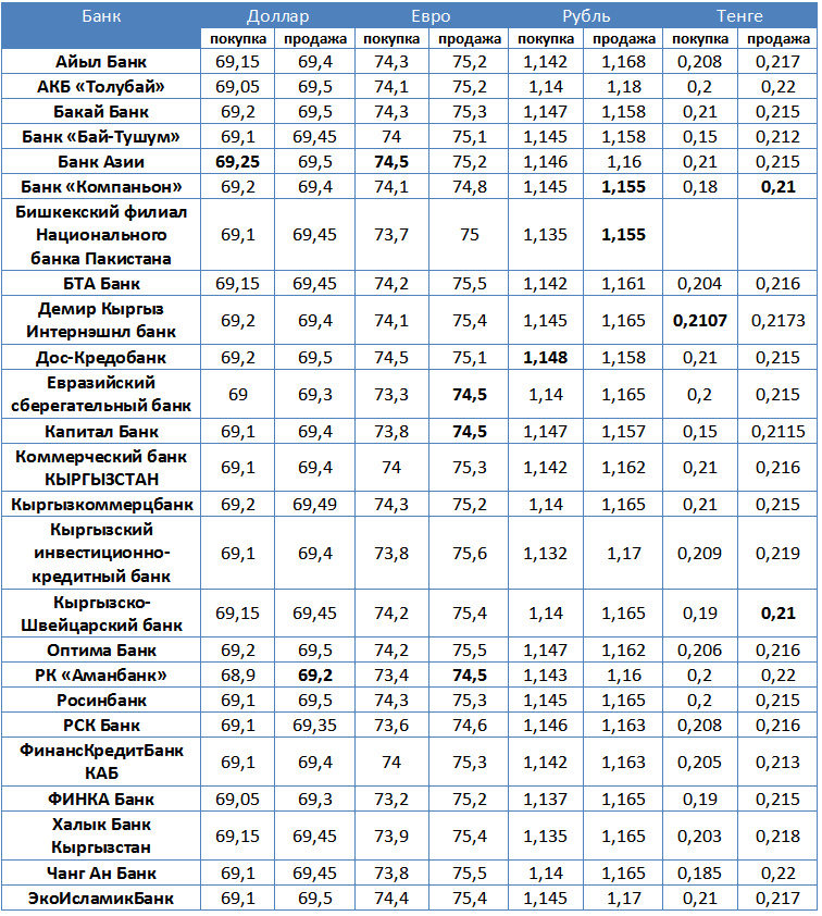Курсы валют в коммерческих банках Кыргызстана на 1 февраля 2017 года