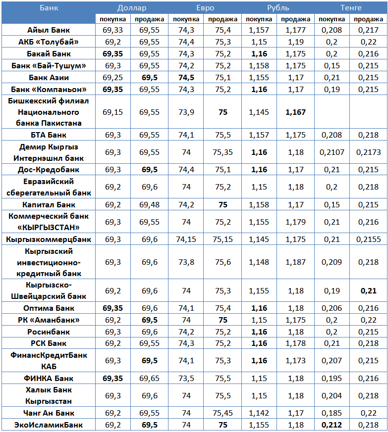 Курсы валют в коммерческих банках Кыргызстана на 2 февраля 2017 года: