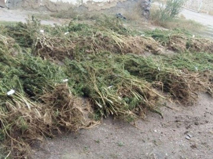 В ходе санкционированного обыска на участке Жалгыз-Кайын в селе Атай, принадлежащем задержанному, оперативники обнаружили и изъяли 2 тысячи 700 тюков марихуаны общим весом 1 тонна 118 килограммов.
