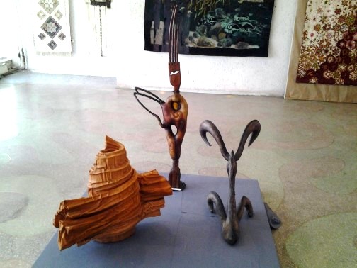 Для представителей декоративно-прикладного искусства и их работ на выставке отвели целый зал в левом крыле музея на первом этаже. От произведений Жыпар Адралиевой, Нурганыш Асановой, Райкуль Ахматовой, Кимии Торогельдиевой, Даркуль Элебесовой, Евгения Лысогорова и многих других профессионалов просто глаз не отвести. Именно они добились того, что национальный колорит стал достоянием мировой культуры.