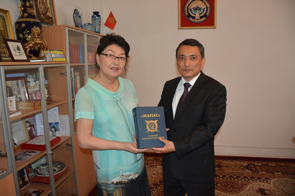 Национальная библиотека Кыргызстана получила в дар книги «Манас»: Саякбай энциклопедиясы». Об этом ИА «24.kg» сообщила сотрудник библиотеки Чолпон Шабданова.