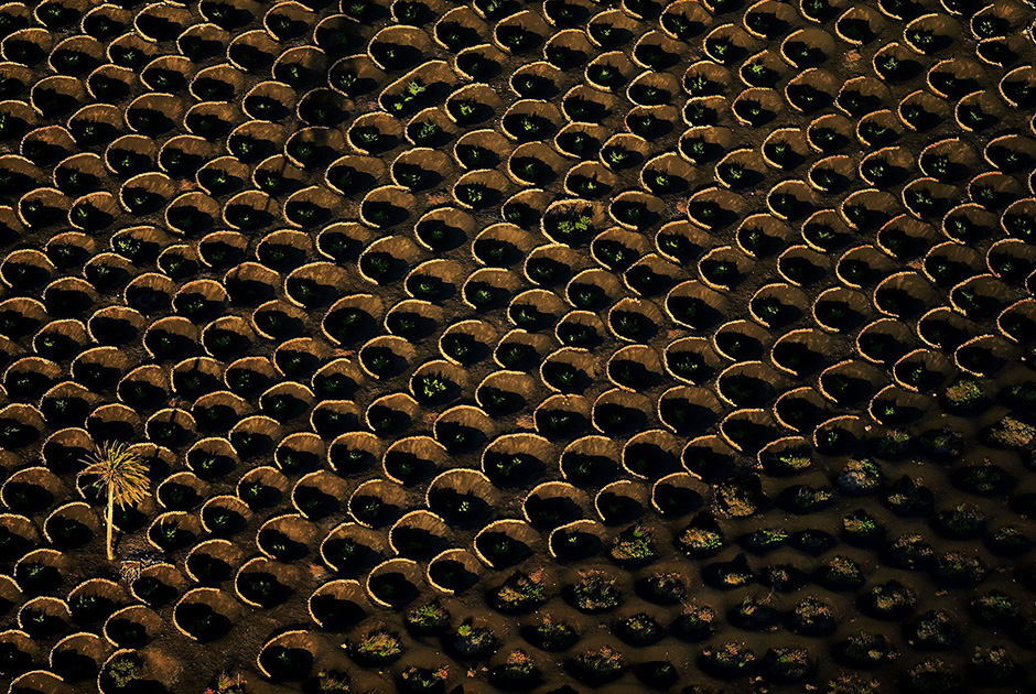 Виноград на Лансароте сажают в вулканическую почву. Полукруглые ограды возводят, чтобы защитить кусты от ветра. Francisco Mingorance