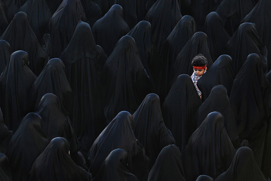 Мусульманка с сыном во время траурных мероприятий в Бахрейне. Isa Ebrahim