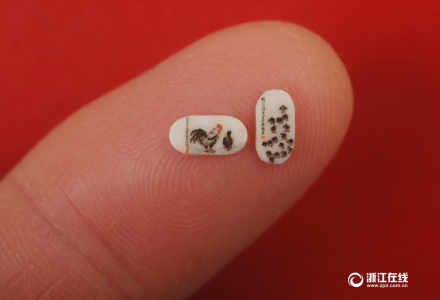 Художник из китайской провинции Чжэцзян создал микроминиатюры размером с рисовое зернышко в честь года Петуха. Об этом пишет газета «Жэньминь жибао».