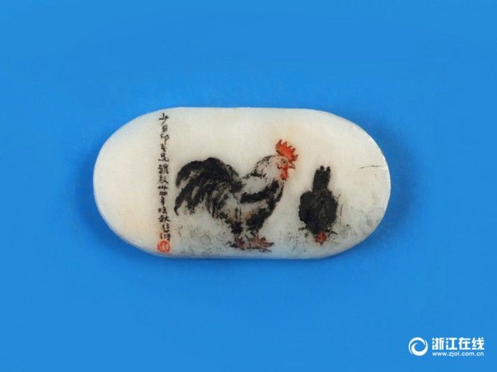 По ее данным, Ли Цицы создал две микроминиатюры с изображением главного героя года. Художник нарисовал петуха на поддельной слоновой кости размером с рисовое зернышко (6 х 3 миллиметра).