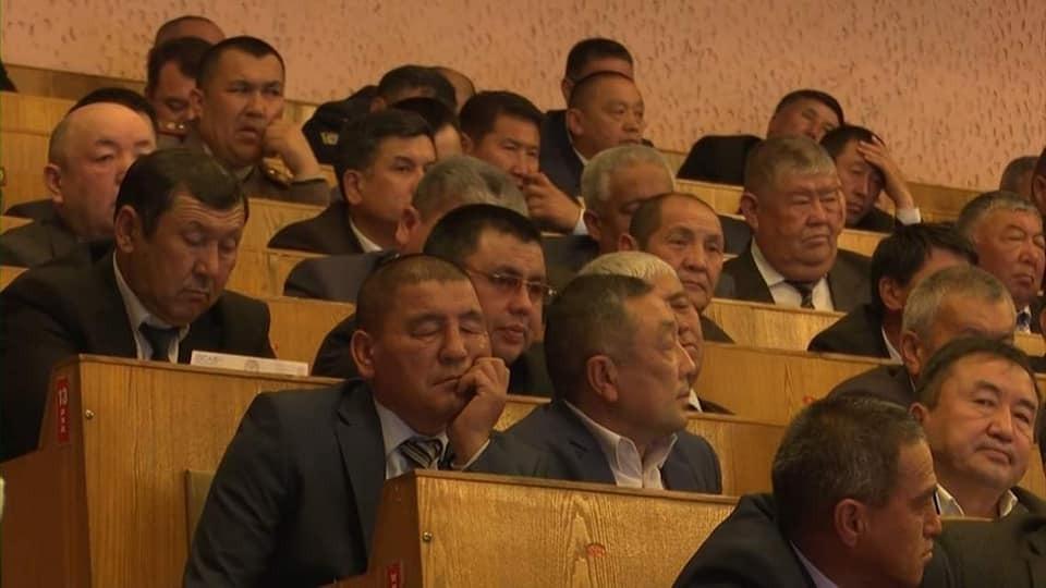 Сүрөттөр өкмөттүн Баткен облусундагы өкүлү Акрам Мадумаров жана Жалал-Абад облусундагы ыйгарымдуу өкүлү Кыянбек Сатыбалдиев уктап олтурушат.