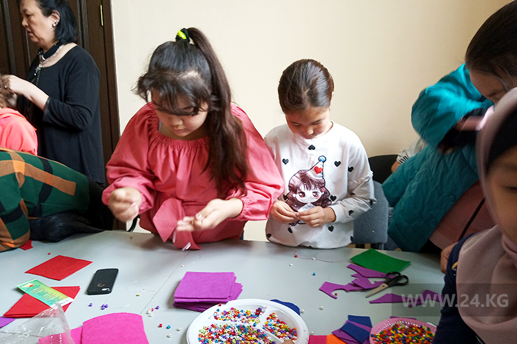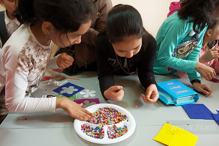 Балдар маалымат өнүктүрүү борборуна келип, анда кол өнөрчүлүк менен алектеништи. Эркек балдар сүрөт тартып, пластилинден түрдүү боюмдарды жасашты. Ал эми кыздар топчу кадап, жипке шуру тизишти.